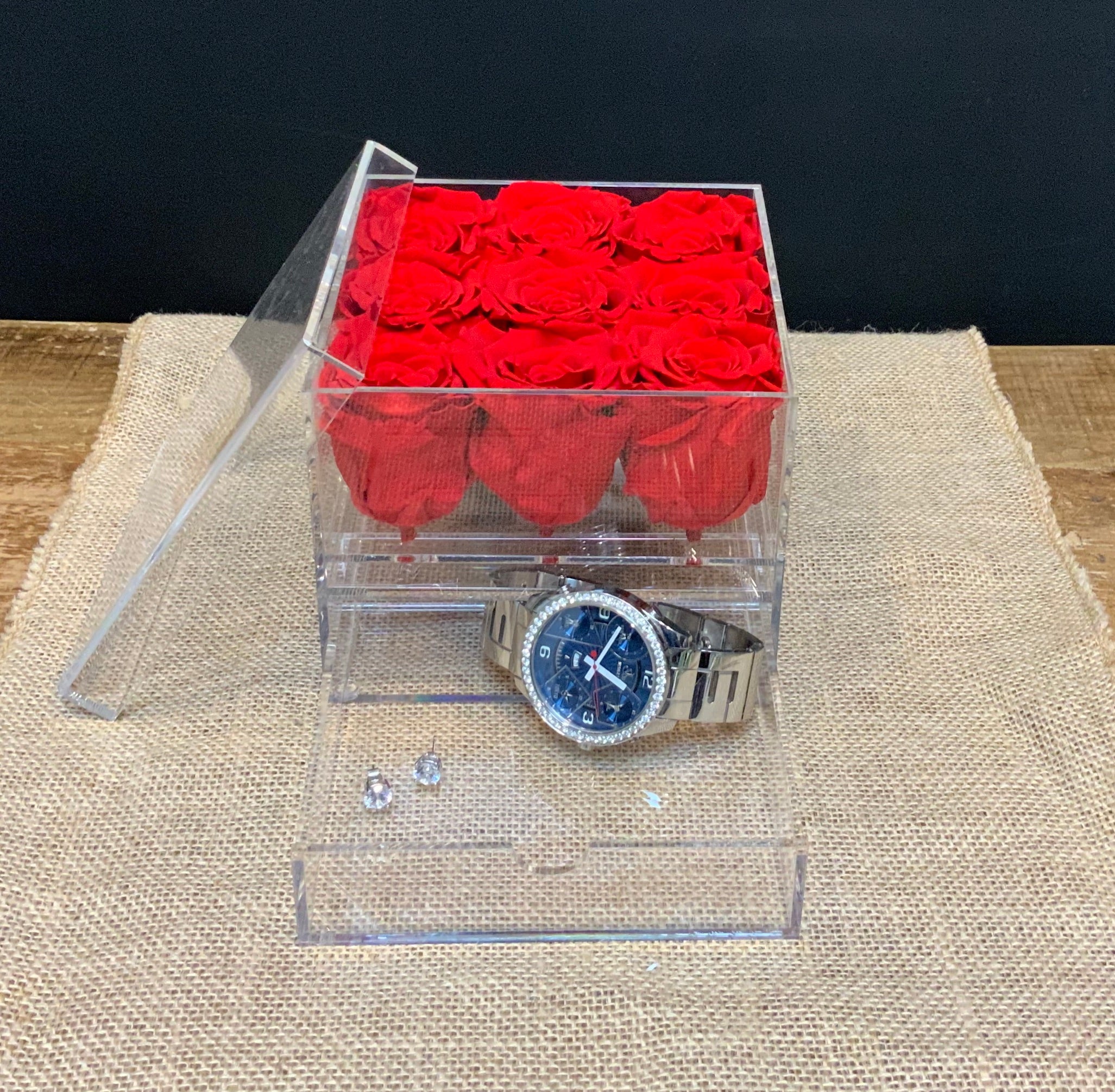 Please indicate your choice of Red, Lavender, Hot Pink, Purple, Gold, Spring Green, Edgy White or Black/Gold preserved roses in the notes field at check-out.